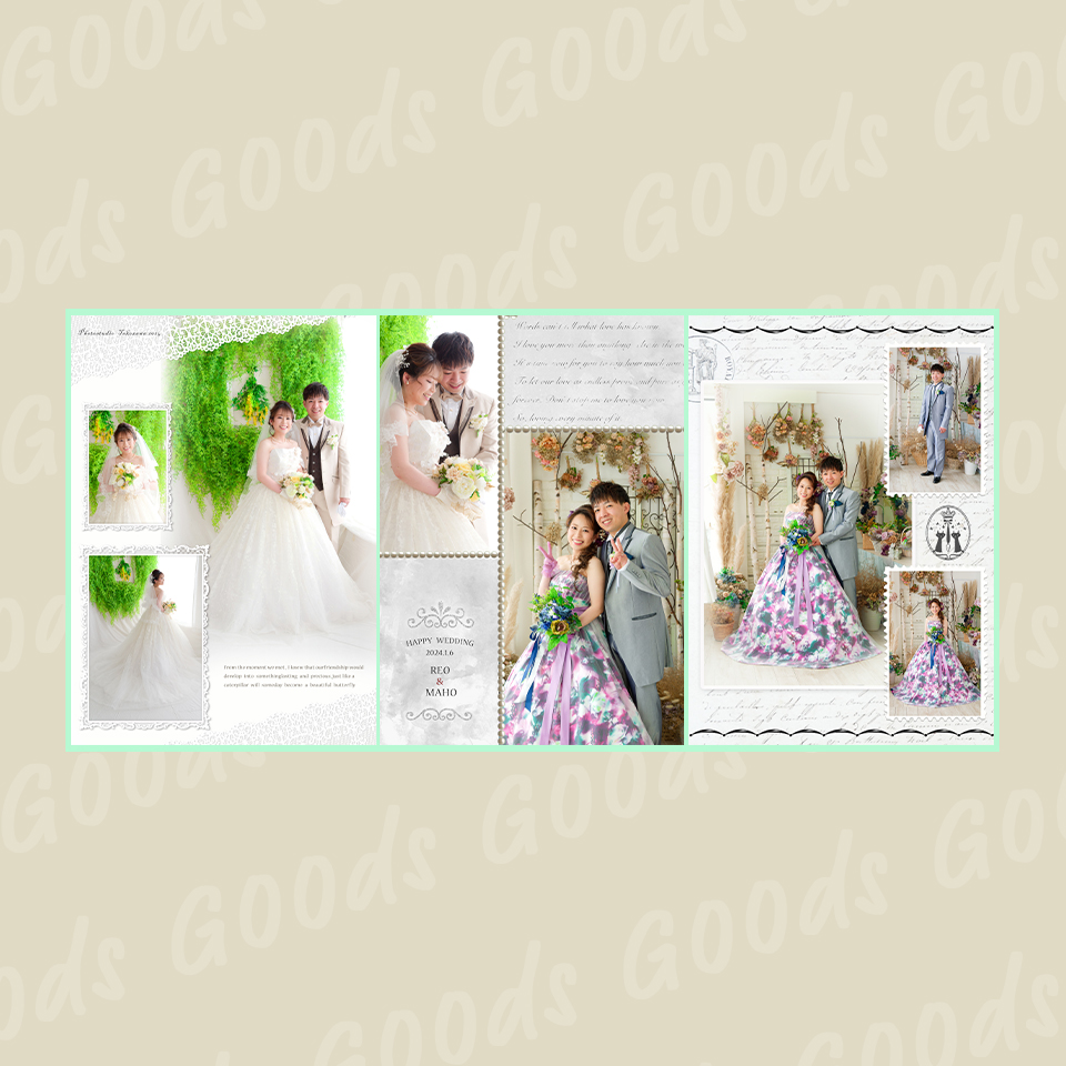 1ページが350mm×250mmの大きなサイズで、3面用、2面用があり、かわいい専用トートバッグがついています。
