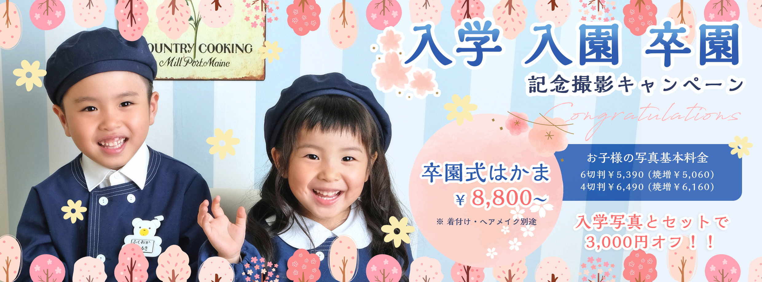 当スタジオでは赤ちゃんから高校のご入学まではお子さま写真料金で、一律となっております。