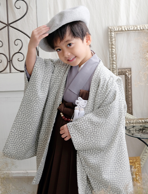 女の子には、3歳の被布・7歳のお振袖・袴・十二単衣・ドレスなど。男の子には、羽織袴・裃・烏帽子(陰陽師風)・牛若丸など お衣装はもちろん無料 お着付け・ヘアメイクもサービスです。
